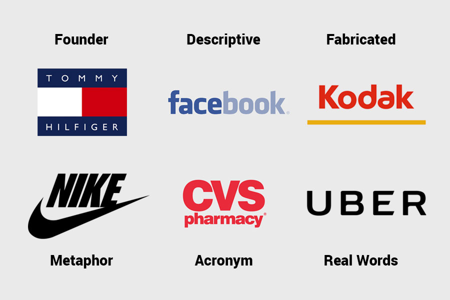 Tên người sáng lập : chúng bao gồm tên của người sáng lập, biệt hiệu và từ viết tắt của tổ chức có thể đã được sử dụng, ngay cả khi không chính thức, chẳng hạn như Ferrari, Chanel, Adidas, IBM và H&M.