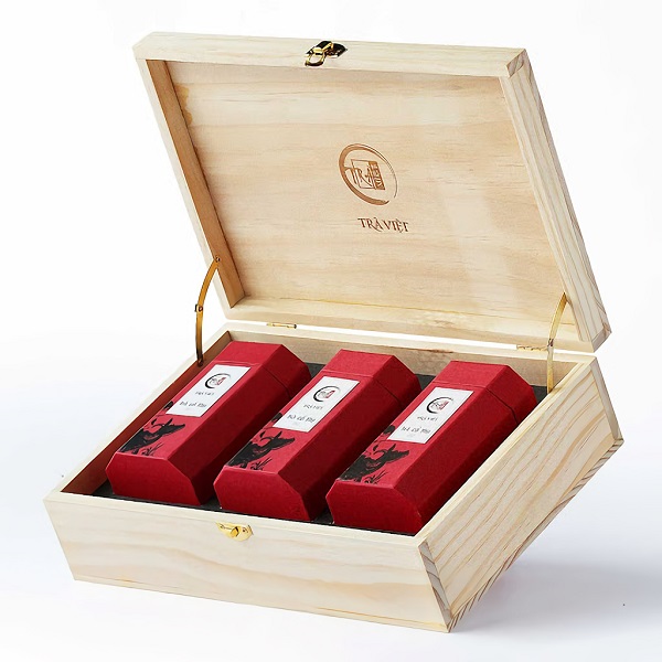 Mẫu hộp quà tết bằng gỗ đựng trà được thiết đơn giản