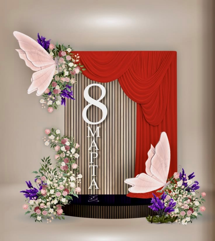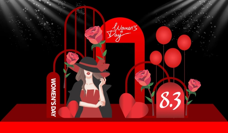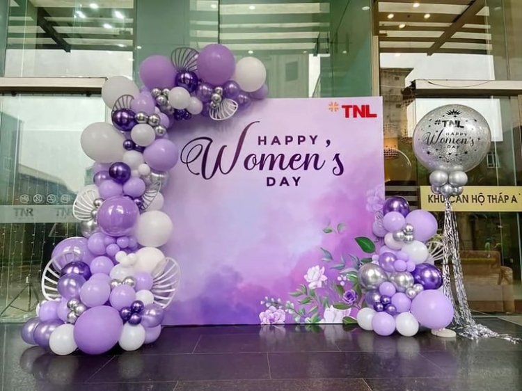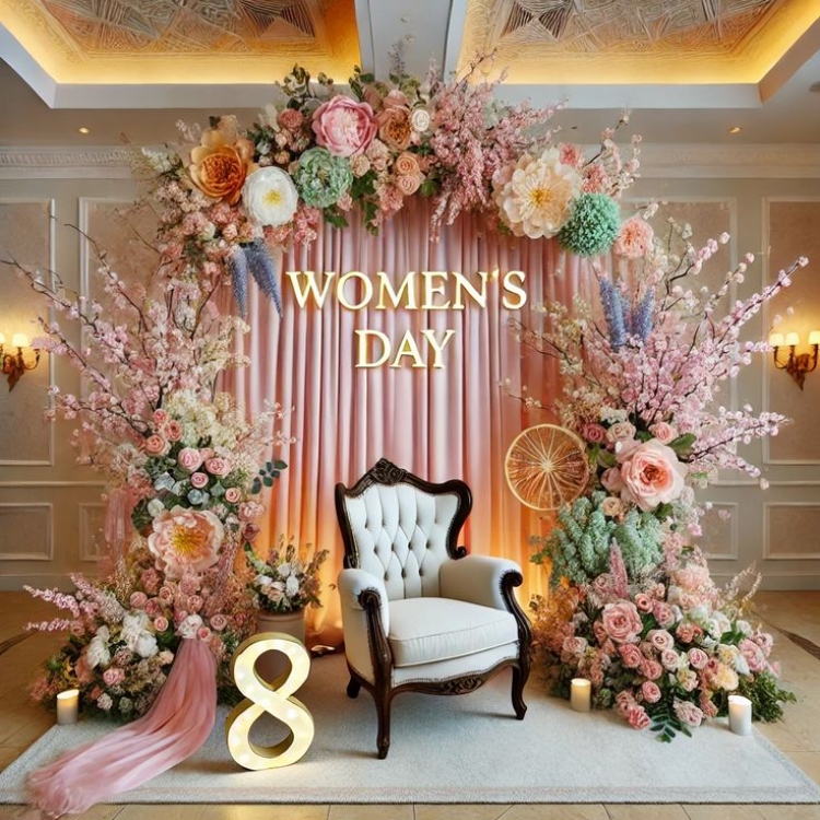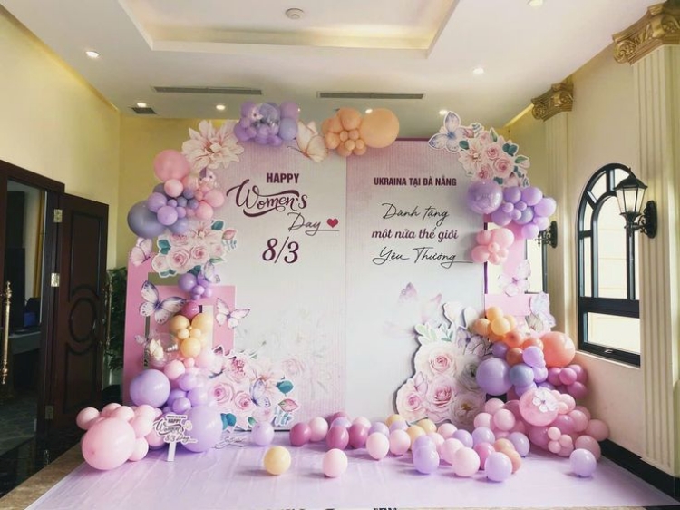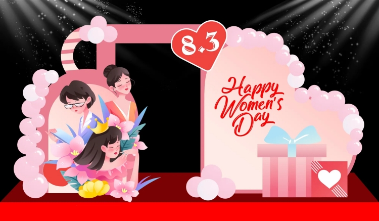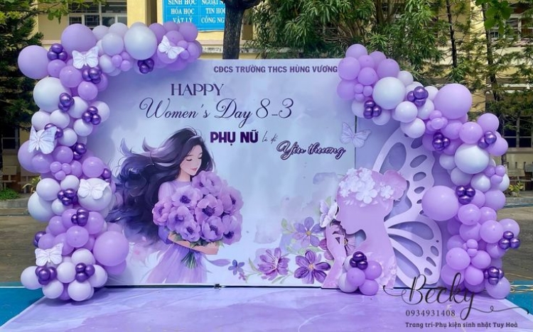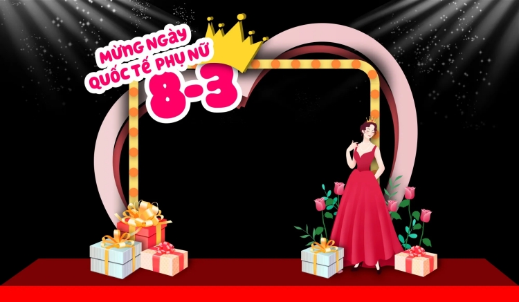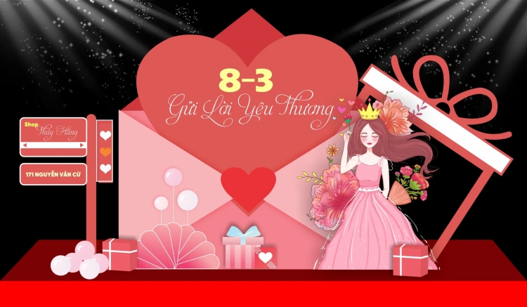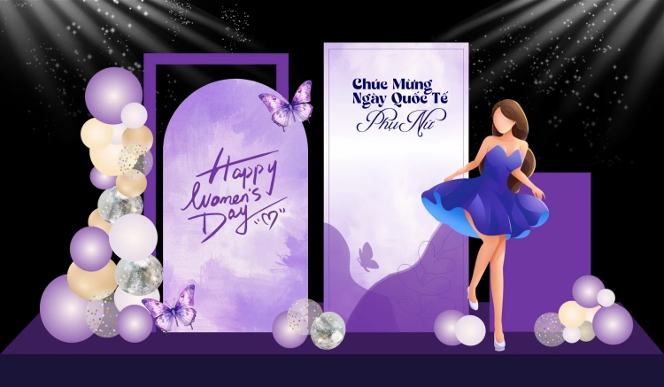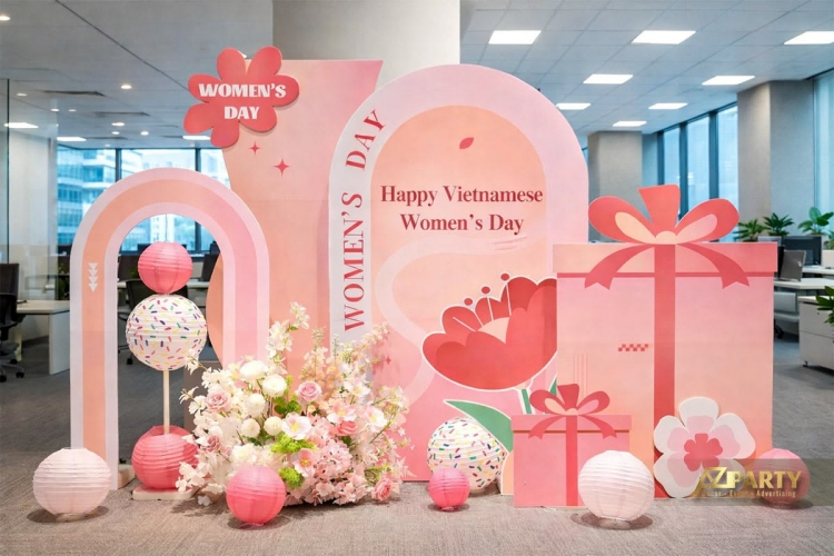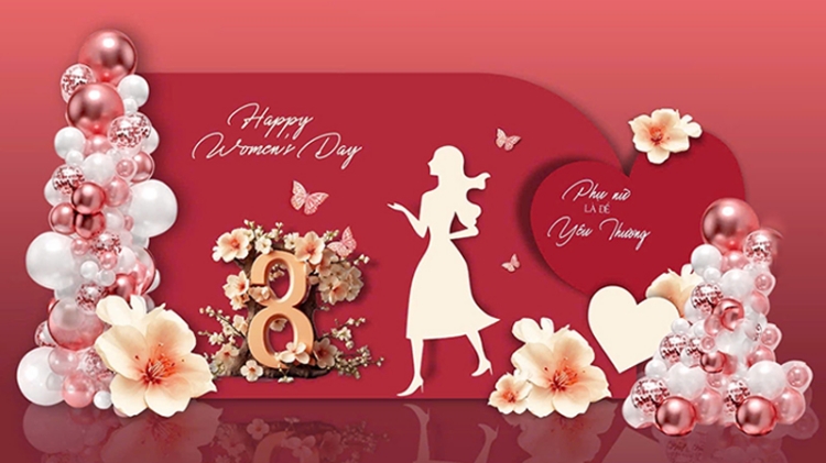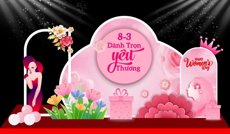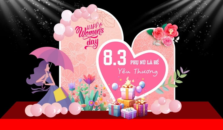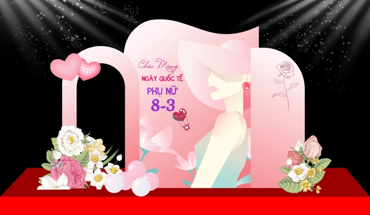 Một backdrop ngày 8/3 chuyên nghiệp thường bao gồm các thành phần: