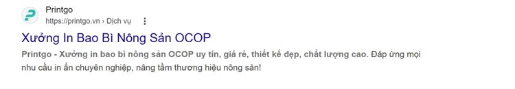 Bước 1: Tại trình duyệt Google gõ từ khoá: "In bao bì nông sản OCOP Printgo"
