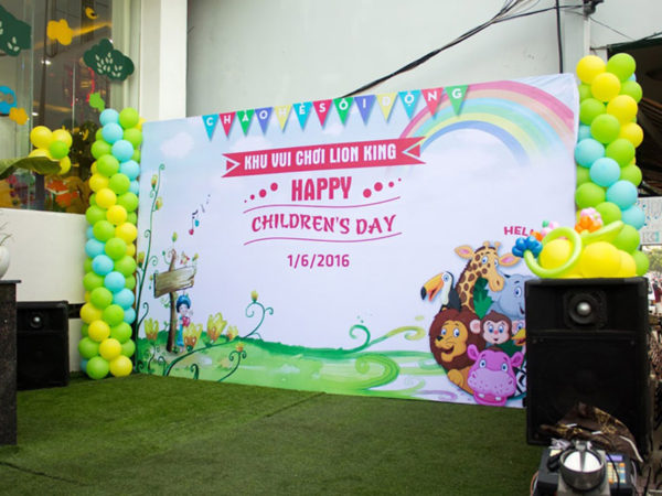 Mẫu backdrop sử dụng cho các chương trình trẻ em trong dịp tết thiếu nhi