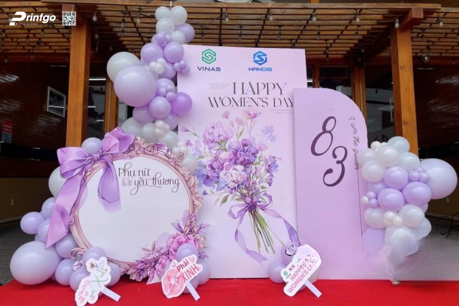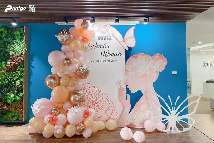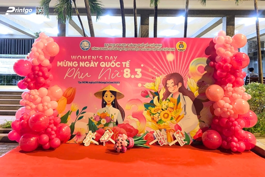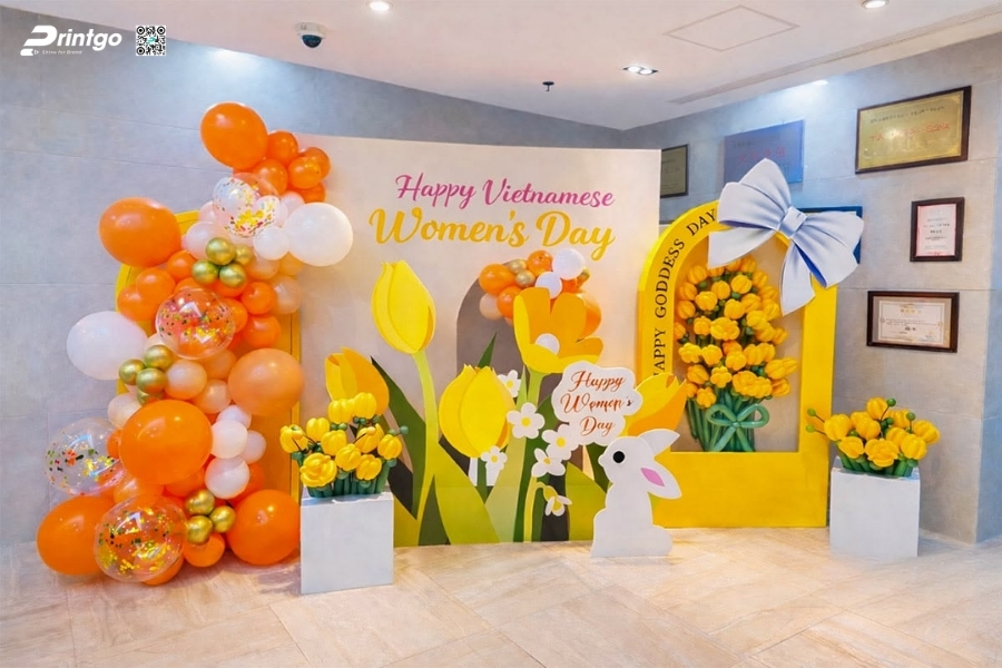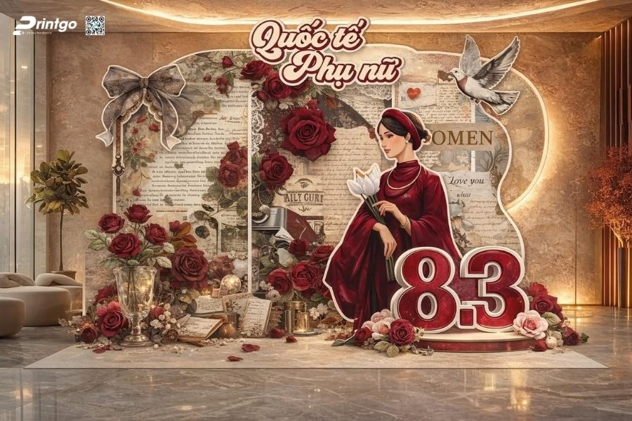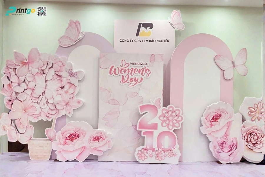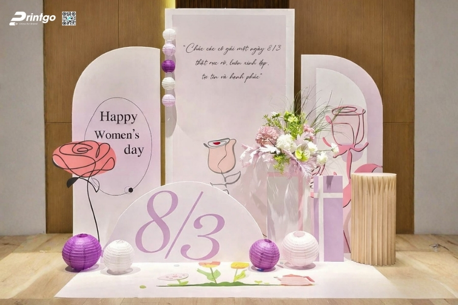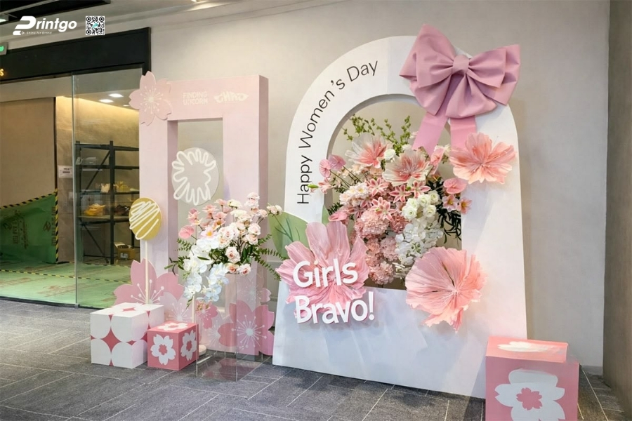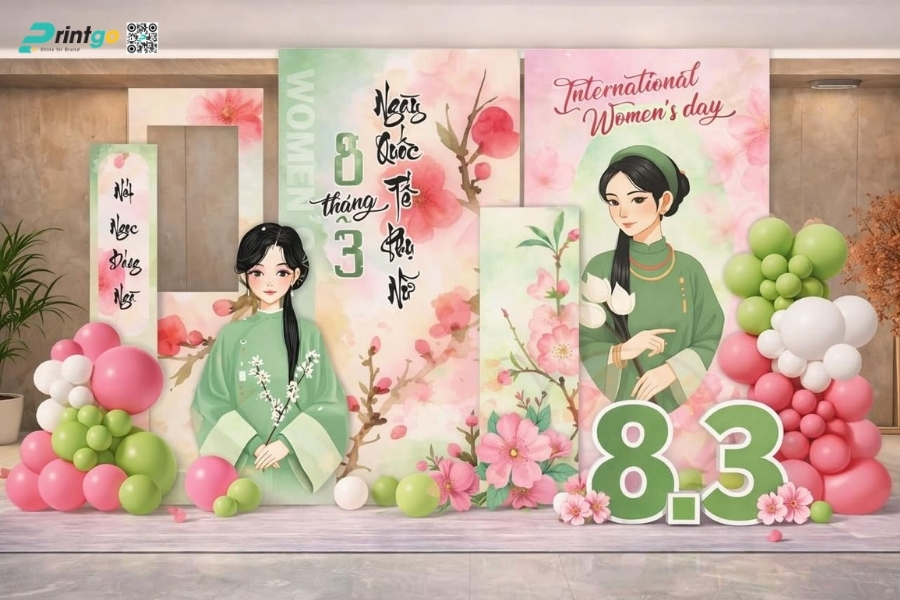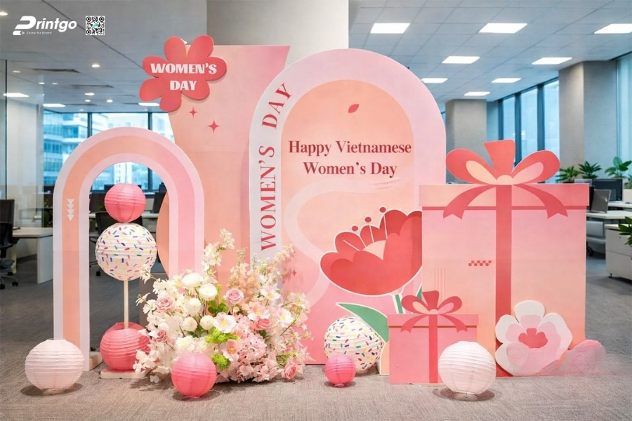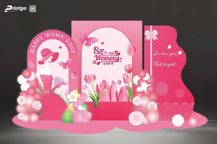 Bên cạnh ý tưởng sáng tạo, Printgo chú trọng vào chất lượng in và độ sắc nét của file thiết kế. Từ việc xử lý backdrop 8/3 vector đúng hệ màu đến lựa chọn chất liệu phù hợp cho từng không gian, mọi khâu đều được kiểm tra kỹ trước khi sản xuất. Nhờ vậy, backdrop ngày 8/3 khi hoàn thiện luôn rõ nét, cân đối và sẵn sàng cho mọi khung hình check-in.