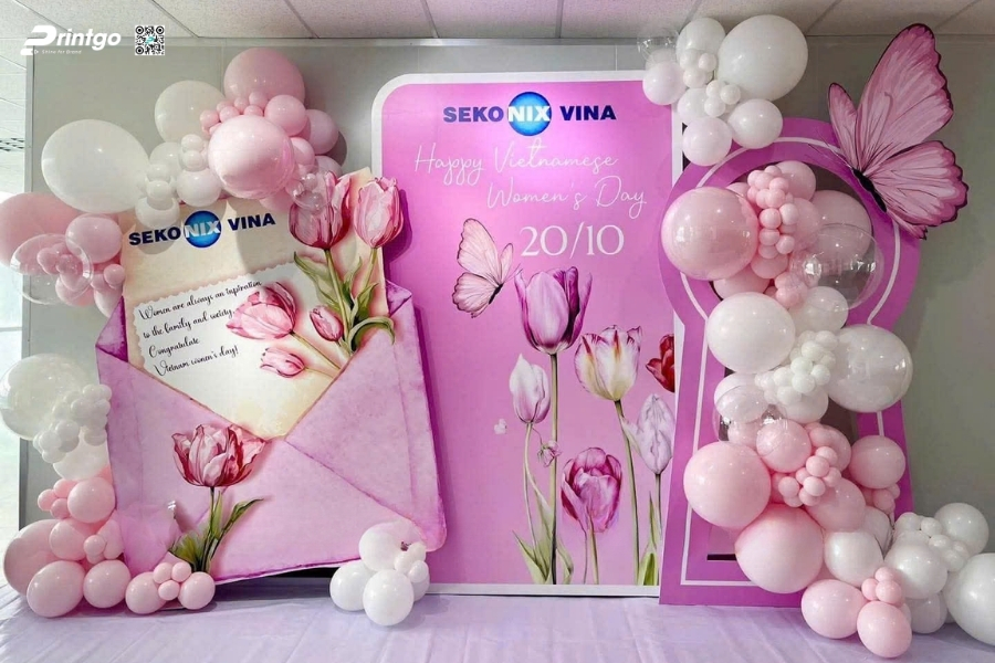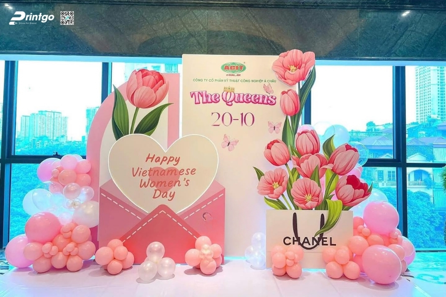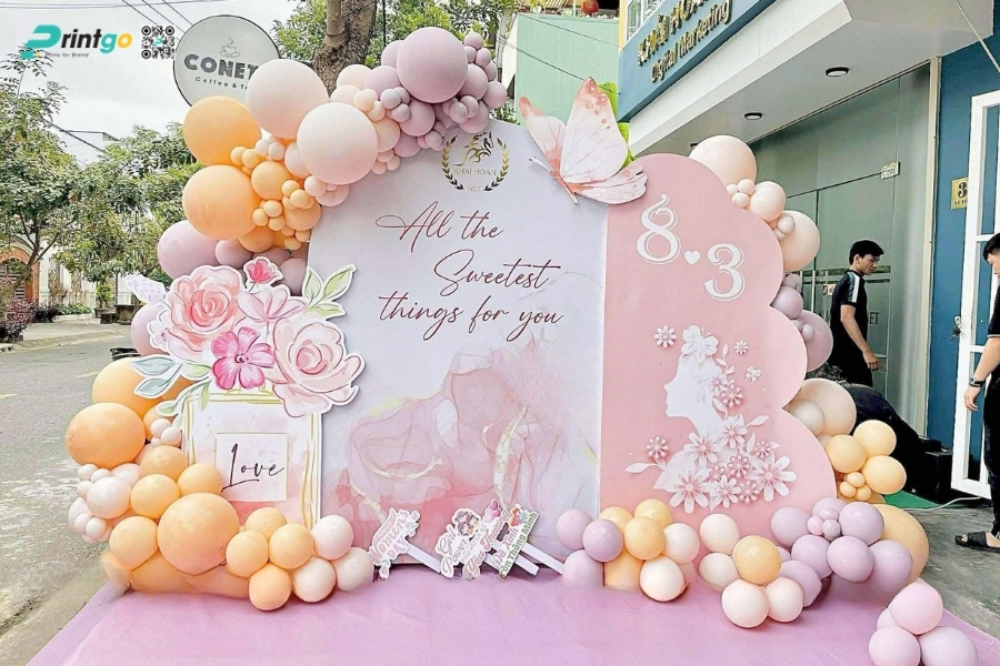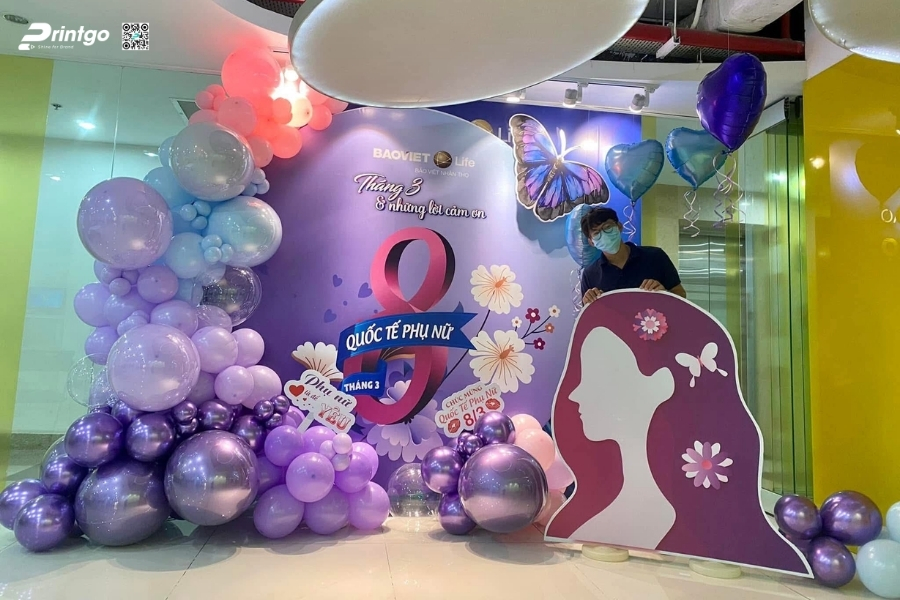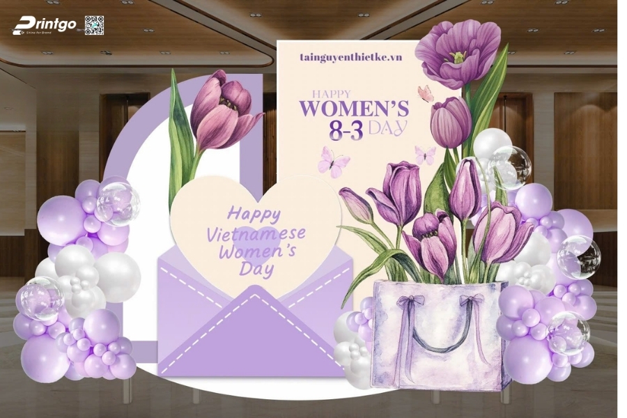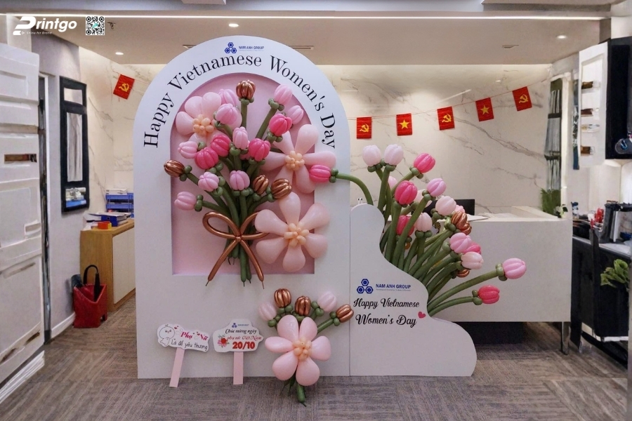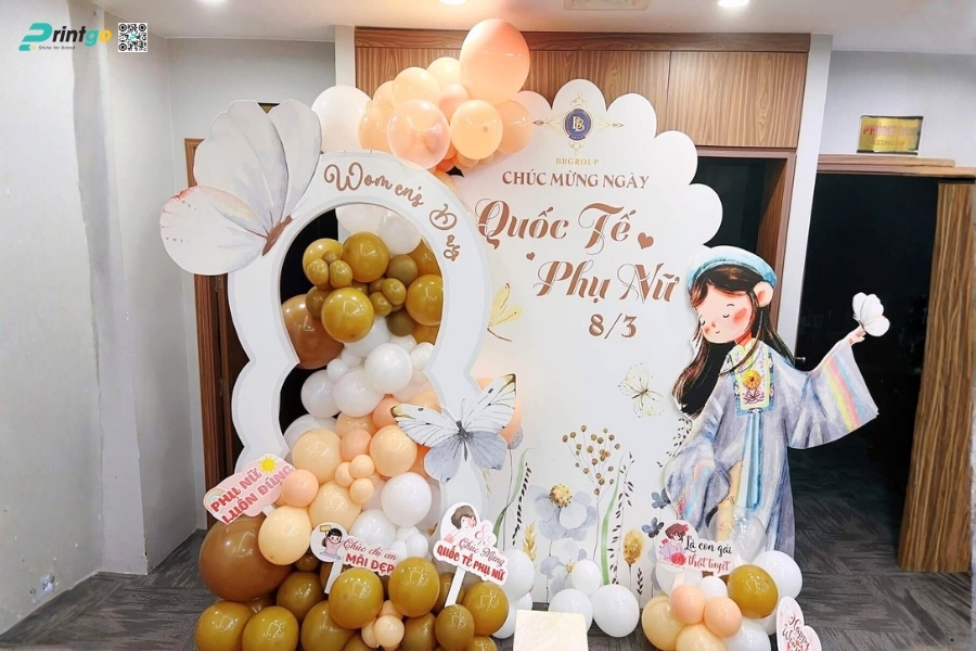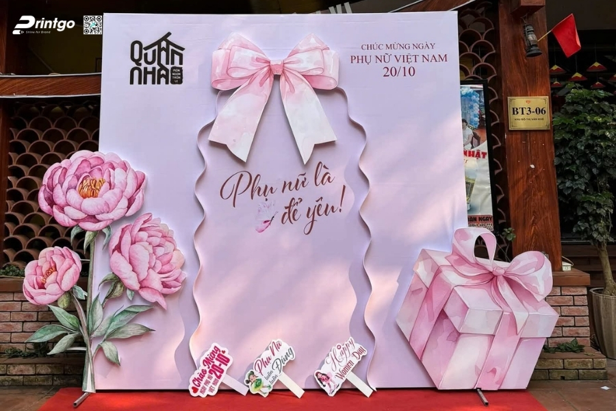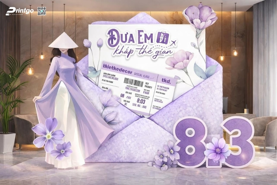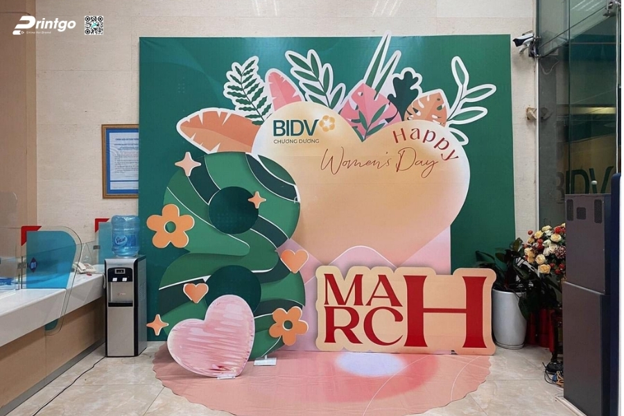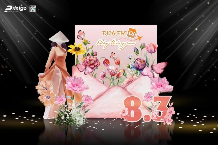 Bên cạnh ý tưởng sáng tạo, Printgo chú trọng vào chất lượng in và độ sắc nét của file thiết kế. Từ việc xử lý backdrop 8/3 vector đúng hệ màu đến lựa chọn chất liệu phù hợp cho từng không gian, mọi khâu đều được kiểm tra kỹ trước khi sản xuất. Nhờ vậy, backdrop ngày 8/3 khi hoàn thiện luôn rõ nét, cân đối và sẵn sàng cho mọi khung hình check-in.