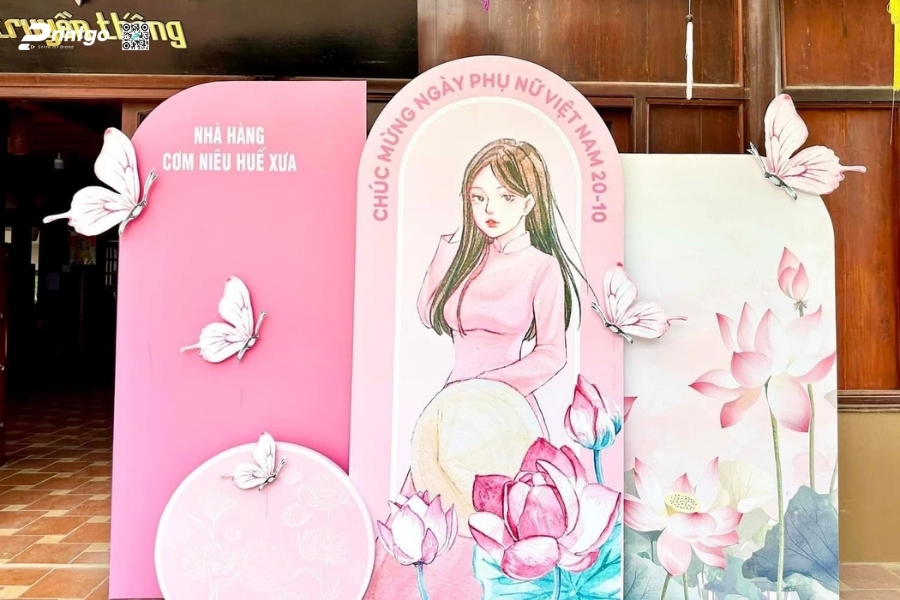 Dự trù ngân sách hợp lý: Cân đối giữa kích thước, chất liệu và các chi tiết trang trí nổi. Không phải lúc nào chi phí cao cũng đồng nghĩa với một backdrop 8/3 đẹp, quan trọng là phù hợp với quy mô thực tế.