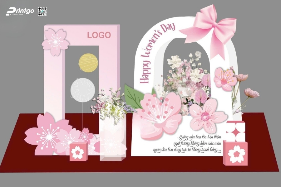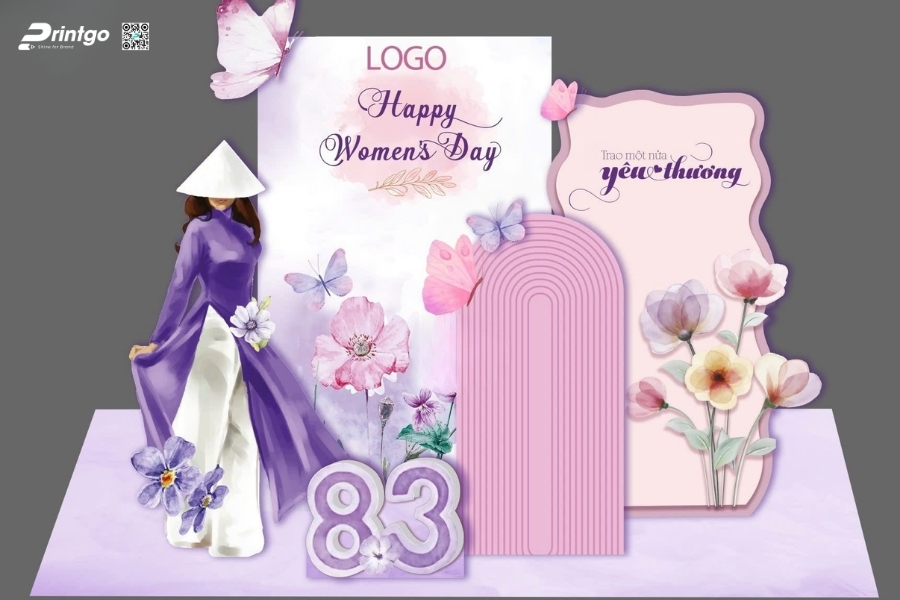 Một mẫu backdrop sự kiện 8/3 đẹp, được thiết kế đúng tinh thần tôn vinh phụ nữ sẽ tạo nên không gian trang trọng, thu hút ánh nhìn và mang lại những khoảnh khắc checkin đáng nhớ. Trong bài viết này, Printgo sẽ gợi ý cho bạn bộ sưu tập hơn 89+ ý tưởng thiết kế nổi bật, từ phong cách sang trọng cho doanh nghiệp đến những mẫu backdrop ngày 8/3 trẻ trung, hiện đại nhất mùa lễ Quốc tế phụ nữ 2026 này nhé!