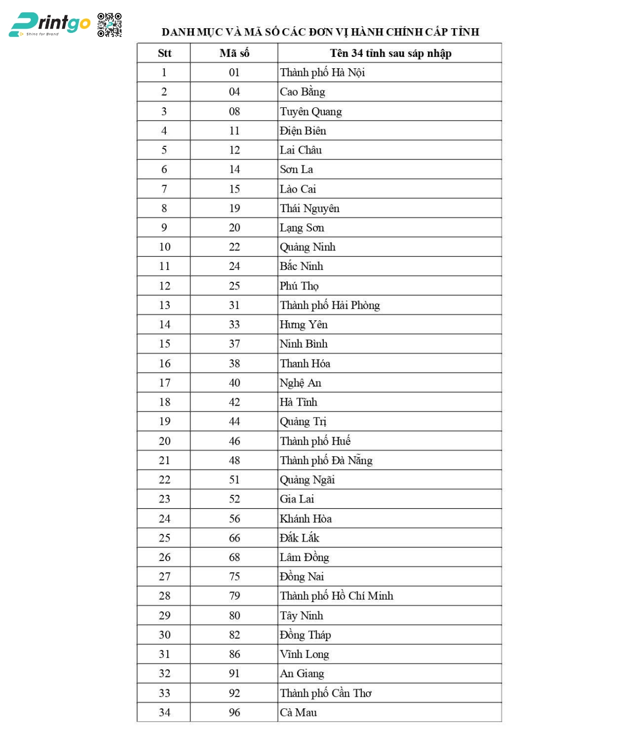 Sau khi sắp xếp và điều chỉnh địa giới hành chính theo Nghị quyết mới nhất, Việt Nam hiện có 34 đơn vị hành chính cấp tỉnh được quy định mã số rõ ràng. Phần danh mục dưới đây sẽ giúp bạn nhanh chóng tra cứu tên tỉnh/thành cùng mã số tương ứng để dễ dàng sử dụng trong mọi dự án đồ họa. Thông tin được tổng hợp từ nguồn Chính phủ, đảm bảo chính xác và cập nhật.