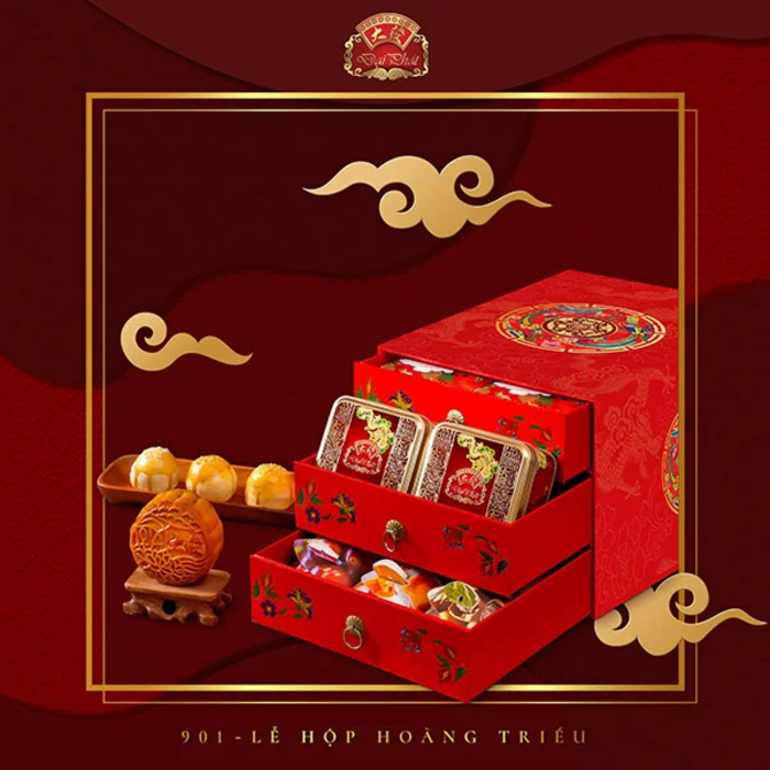 Lễ Hộp Hoàng Triều của Bánh Trung Thu Đại Phát là sự kết hợp độc đáo của các loại bánh trung thu truyền thống và hiện đại. Sự đa dạng về hương vị trong từng tầng của hộp bánh tạo nên sự thú vị cho người thưởng thức. Thiết kế hộp bánh ba tầng vừa tạo sự tiện lợi vừa mang lại vẻ đẹp sang trọng, tôn vinh giá trị của mỗi chiếc bánh nằm bên trong.