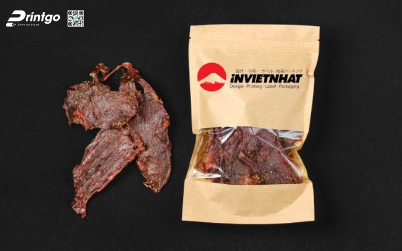 Túi zip là lựa chọn lý tưởng cho bao bì bò khô nhờ phần miệng khóa tiện lợi, cho phép đóng – mở nhiều lần mà vẫn giữ được độ khít, chống ẩm hiệu quả. Chất liệu nhiều lớp giúp cân bằng hơi ẩm bên trong, bảo vệ thớ thịt bò khô luôn tươi ngon. Thiết kế túi trong suốt hoặc phối màu ăn khớp với thương hiệu vừa tăng tính thẩm mỹ, vừa giúp khách hàng dễ dàng quan sát sản phẩm.