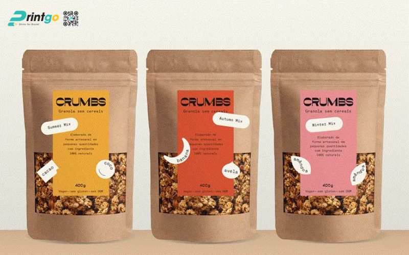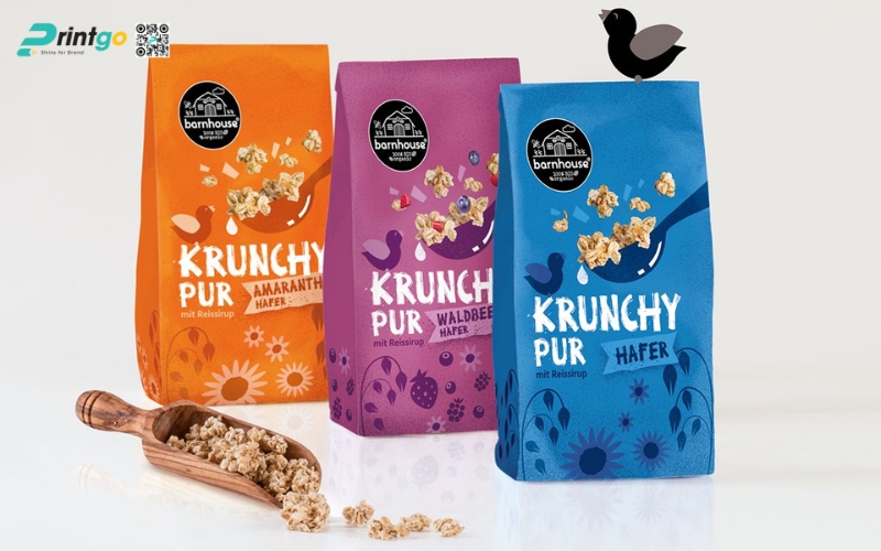 - Giữ trọn độ giòn - bảo quản tối ưu: Granola dễ hút ẩm và mất độ giòn nếu không được đóng gói đúng cách. Vì vậy, chất liệu bao bì có khả năng chống ẩm, chống oxy hóa là yếu tố then chốt giúp sản phẩm giữ nguyên hương vị và độ tươi ngon.