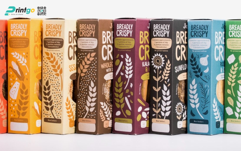- Thiết kế sáng tạo, phù hợp định vị thương hiệu: Đội ngũ thiết kế của Printgo am hiểu đặc thù ngành hàng thực phẩm, từ đó giúp doanh nghiệp thể hiện đúng tinh thần sản phẩm từ phong cách organic, năng động đến cao cấp, quà tặng.