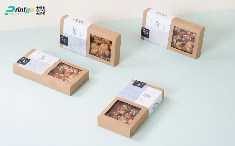 - Hộp carton nắp gài: Phù hợp với granola đóng gói nhỏ hoặc dòng quà tặng. Thiết kế chắc chắn, dễ in ấn, bảo quản tốt và tạo cảm giác chỉn chu, chuyên nghiệp.