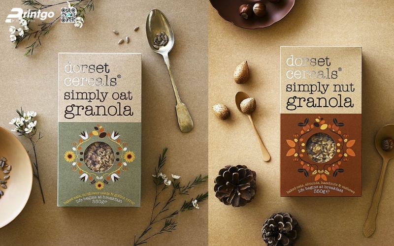 - Xu hướng tối giản - Less is more: Thiết kế bao bì granola hiện đại đang dần loại bỏ chi tiết rườm rà, thay vào đó là bố cục thoáng, ít chữ, nhiều không gian trắng.