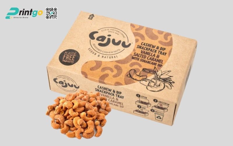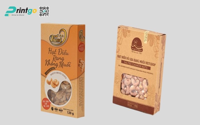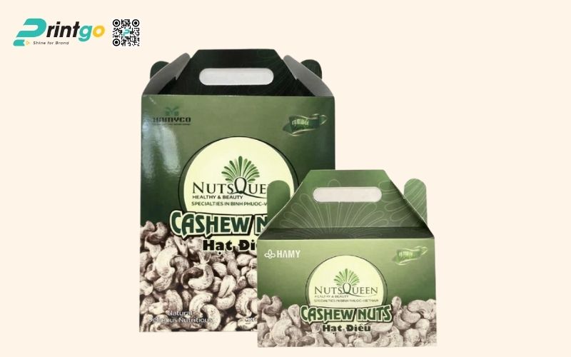 Ngoài túi zip và hũ nhựa, thì hộp giấy đựng hạt điều cũng là một giải pháp bao bì tối ưu, không chỉ đảm bảo an toàn và tiện lợi trong bảo quản sản phẩm mà còn thân thiện với môi trường. Đặc biệt, xu hướng sử dụng hộp giấy đang ngày càng trở nên phổ biến trong ngành bao bì thực phẩm, giúp doanh nghiệp nâng cao giá trị thương hiệu, tạo ấn tượng chuyên nghiệp và thu hút khách hàng hiệu quả.