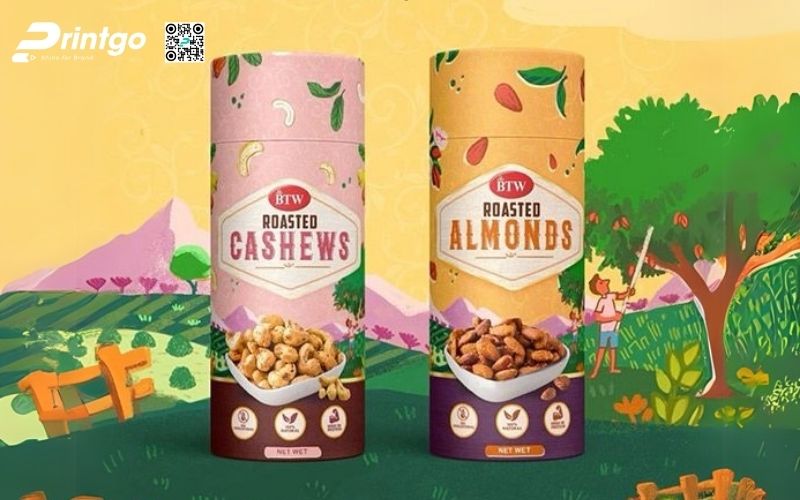 Phần nắp đóng kín, chắc chắn, có thể thêm lớp niêm phong bên trong giúp hạt điều không bị ẩm mốc hay bay hương. Đặc biệt, hộp giấy dạng trụ còn có thể tái sử dụng sau khi dùng hết sản phẩm, thân thiện với môi trường và ghi điểm tốt với khách hàng.