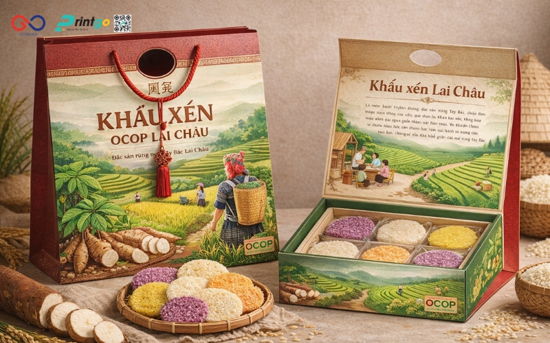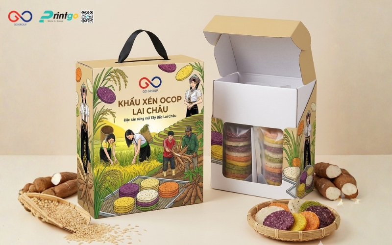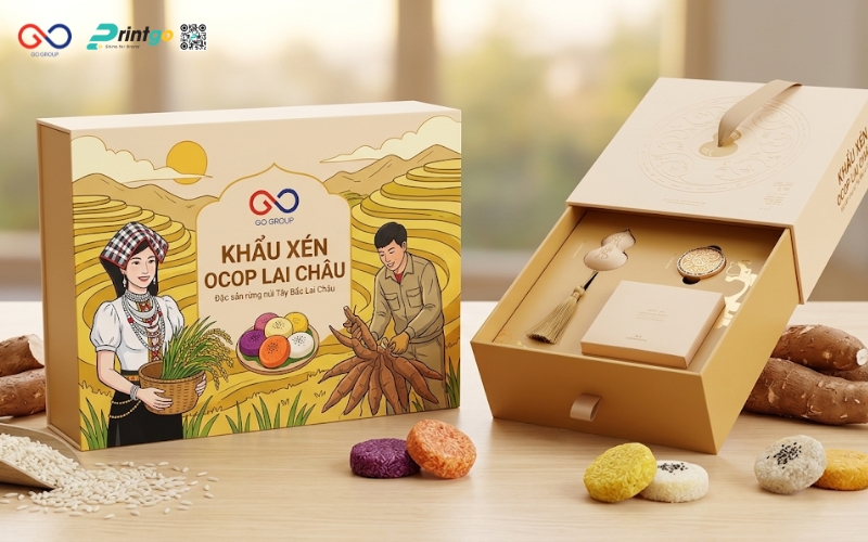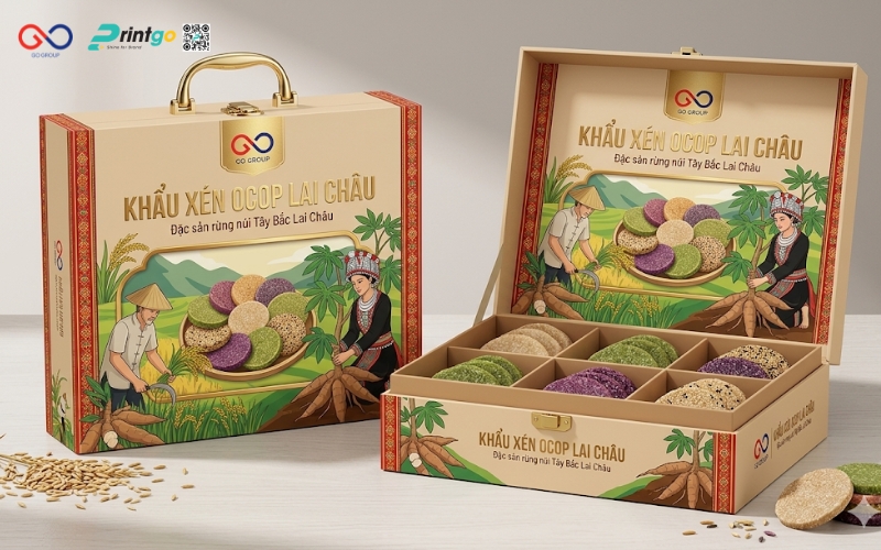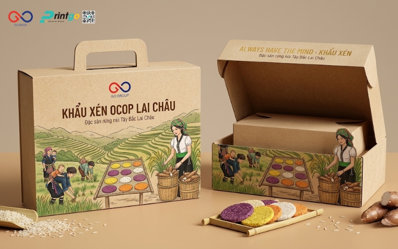 Không dừng lại ở việc phân tích, Printgo đồng hành cùng doanh nghiệp trong việc đề xuất giải pháp cụ thể và phù hợp. Từ định hướng lại bao bì khẩu xén Lai Châu, lựa chọn chất liệu, cấu trúc như túi đựng khẩu xén Lai Châu hay phát triển thêm hộp khẩu xén Lai Châu cho phân khúc quà tặng, mọi phương án đều được xây dựng dựa trên mục tiêu kinh doanh thực tế. Nhờ đó, bao bì không chỉ đẹp hơn mà còn giúp sản phẩm dễ bán hơn, dễ mở rộng thị trường hơn.