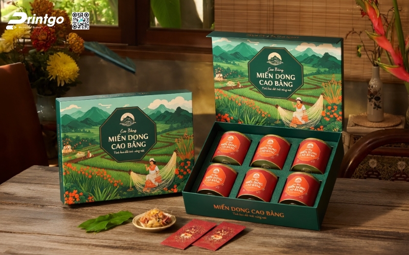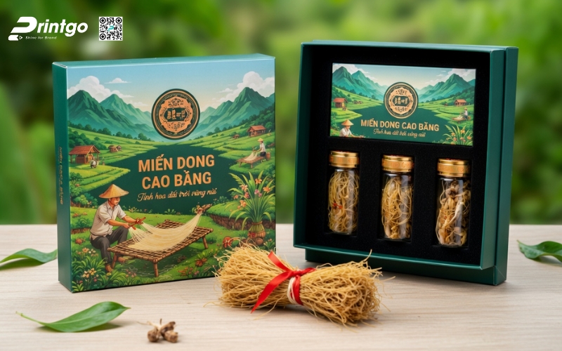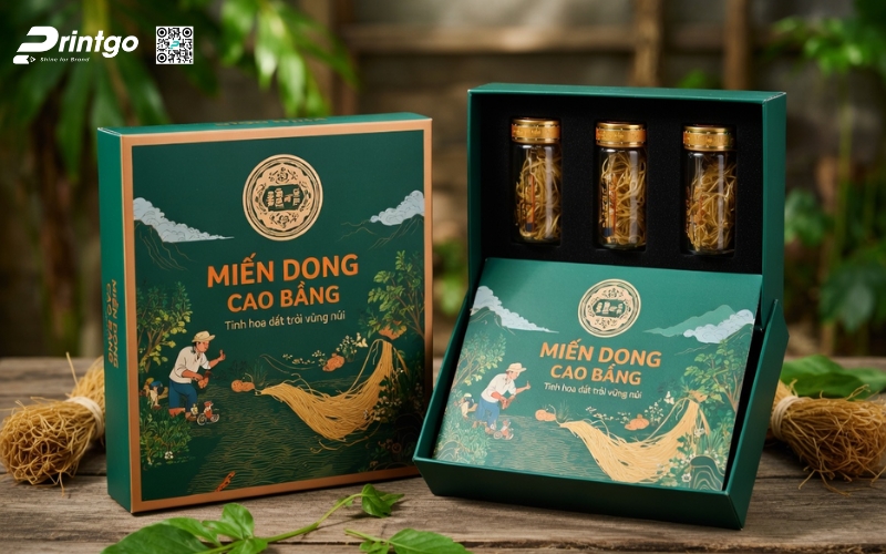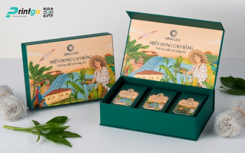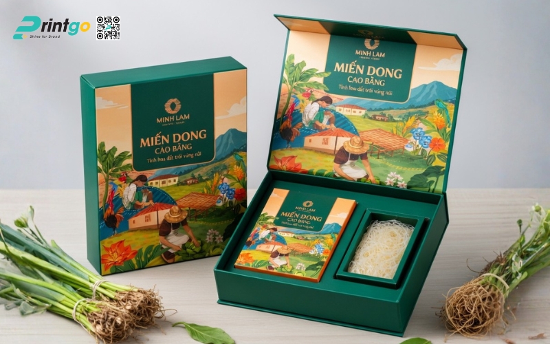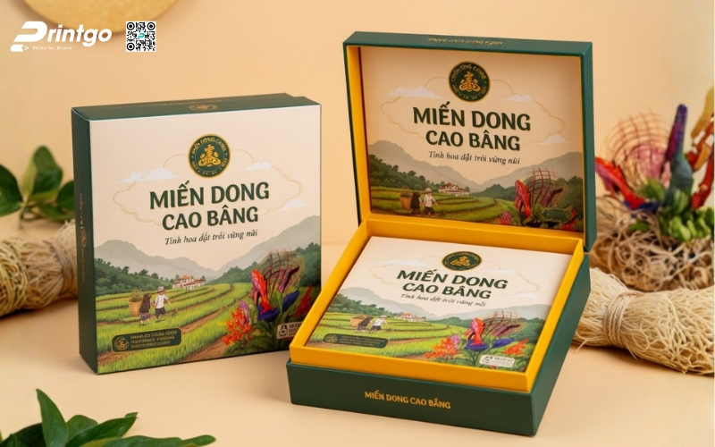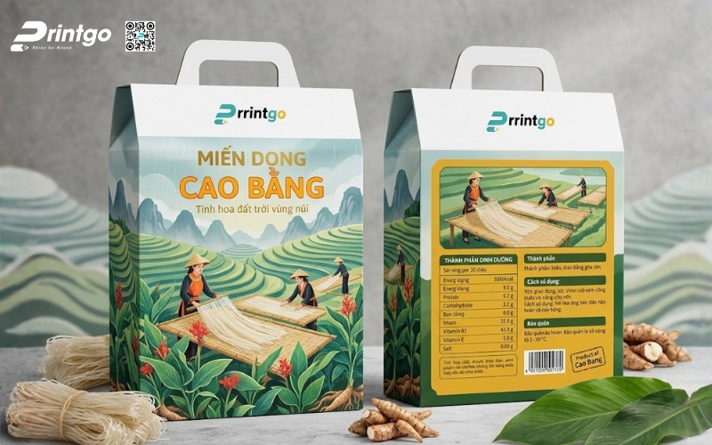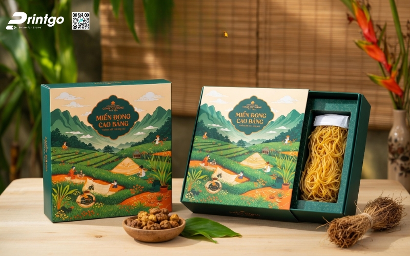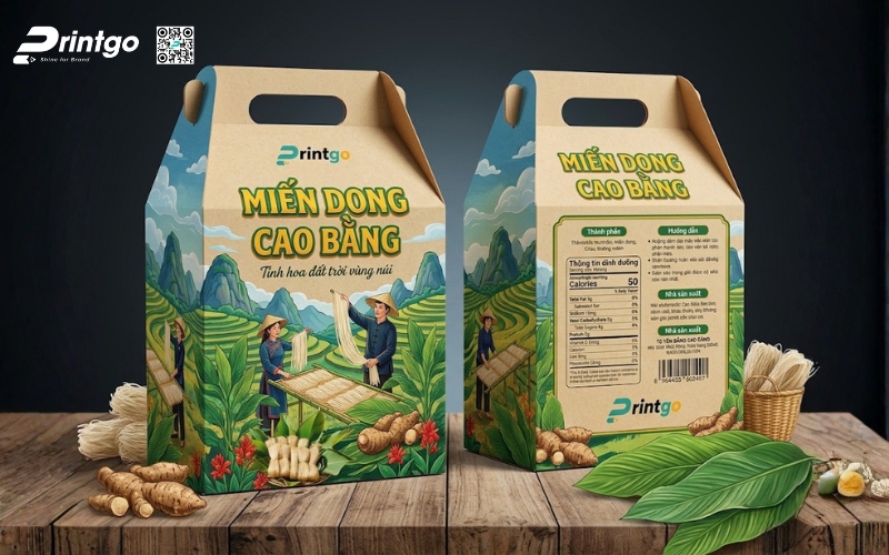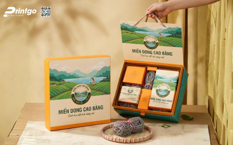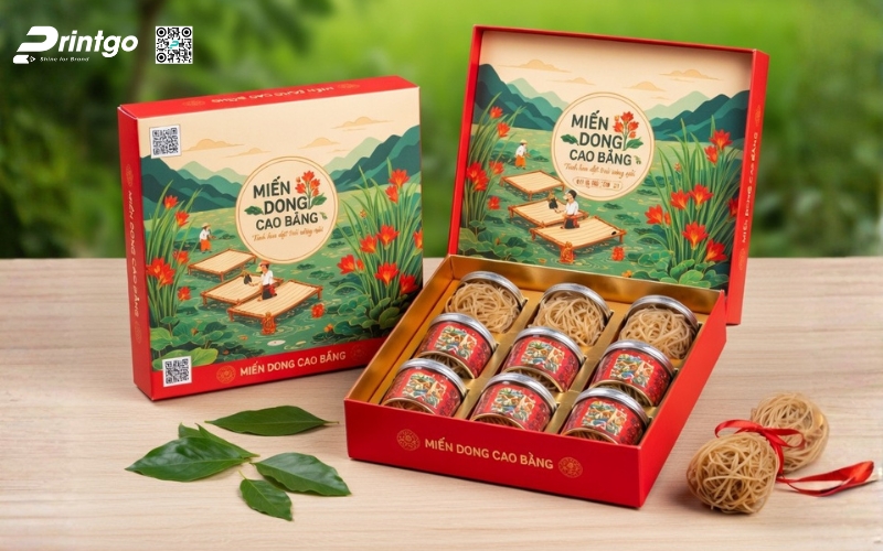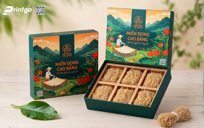Khi sản phẩm hướng đến phân khúc quà tặng hoặc thị trường cao cấp, bao bì phải thể hiện được giá trị bên trong. Những mẫu hộp đựng miến Cao Bằng được thiết kế bài bản không chỉ giúp sản phẩm trở nên sang trọng hơn mà còn nâng tầm cảm nhận của người mua. Đây cũng là bước đi cần thiết nếu muốn đưa đặc sản miến Cao Bằng tiến vào siêu thị hoặc xuất khẩu, nơi mà hình thức đóng gói đóng vai trò gần như quyết định.