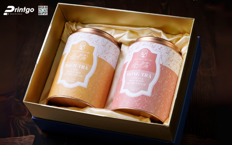 - Thiếc (Tin Box): Dùng cho hộp tròn hoặc hộp vuông cao cấp. Bao bì thiếc vừa sang trọng, vừa có thể tái sử dụng, thường được chọn cho các set trà quà tặng.