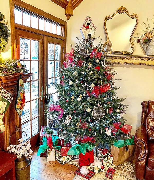 Nếu bạn là người bận rộn, nhưng vẫn muốn trang hoàng nhà cửa vào những ngày Giáng Sinh này. Bạn có thể lựa chọn phong cách trang trí cây thông đơn giản, tự nhiên mà vẫn đẹp như sau: hãy sử dụng những sợi giấy trắng cùng hạt xốp nhỏ hay các vật liệu tạo hiệu ứng tuyết trắng và cuối cùng là trang trí, sắp xếp trên các tán lá thông một cách hài hòa, tự nhiên nhất.
