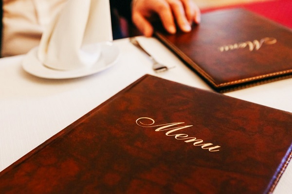 Sổ menu bìa da dùng để giới thiệu thực đơn tới khách hàng