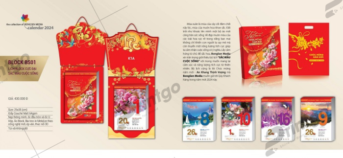 Dịp năm mới 2025 đang chuẩn bị gõ cửa, công ty Bông Sen Media phối hợp với Printgo - Công ty in ấn và thiết kế số 1 Việt Nam cho ra mắt bộ Catalogue lịch năm mới 2025 với những ấn phẩm như lịch bloc, đế lịch bằng gỗ, lịch bàn,..Lấy cảm hứng từ những chủ đề quen thuộc trong cuộc sống như văn hóa, di sản đất nước, thiên nhiên, sắc hoa,... hay những ý tưởng mới mẻ về kiến trúc và di sản,... bộ sưu tập lịch tết Bông Sen hứa hẹn sẽ mang đến cho khách hàng những cung bậc cảm xúc mong chờ, hồi hộp suốt chặng đường 365 ngày.