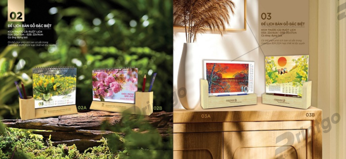 Đế lịch bằng gỗ là một sản phẩm thú vị và độc đáo để trưng bày hoặc sử dụng trong việc quản lý thời gian. Đế lịch bằng gỗ có thể được làm từ các loại gỗ cao cấp, bền đẹp. Phần lịch cài rời có những bức tranh, ảnh về đa dạng các lĩnh vực, khung cảnh, giúp làm bừng sáng không gian sống và làm việc của bạn, giúp cho mọi chuyện được hanh thông, thuận lợi.