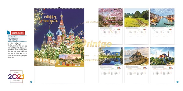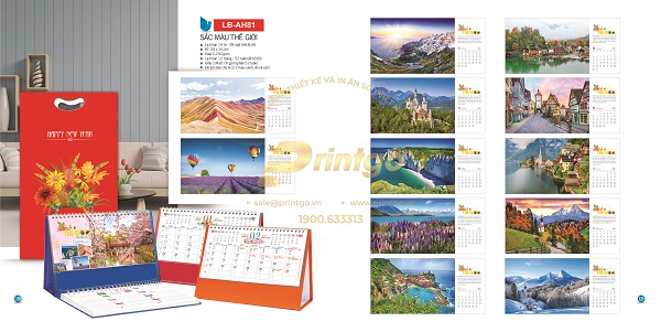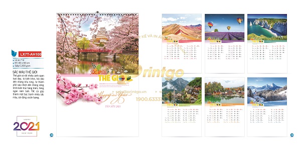 Với những cảnh quan thiên nhiên tươi đẹp, những công trình kiến trúc đồ sộ, những điểm đến nổi tiếng trên khắp thế giới được ghi lại bằng những tấm hình chân thực và sắc nét, bộ sưu tập mẫu lịch tết chủ đề “Sắc màu thế giới” sẽ đưa bạn đi du lịch vòng quanh thế giới, khám phá những điều thú vị mỗi ngày.