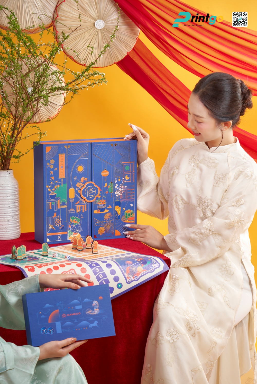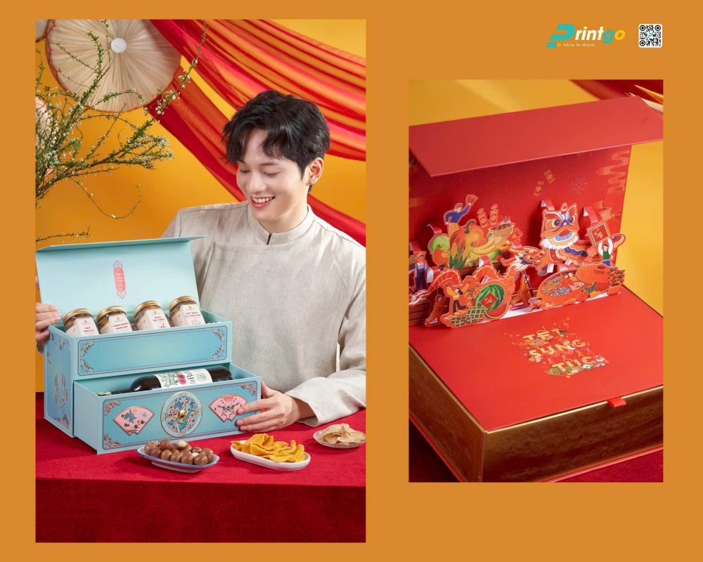 Với kinh nghiệm dày dặn thực chiến qua nhiều mùa Tết, Printgo đã ứng dụng những quy cách gia công phức tạp để tạo nên trải nghiệm "Unboxing" (mở hộp) đáng nhớ: