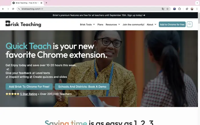 Brisk Teaching là một phần mềm mở rộng Chrome miễn phí, mang đến cho giáo viên một "bộ công cụ" AI mạnh mẽ với hơn 30 tính năng hỗ trợ giảng dạy. Từ việc soạn giáo án, chấm điểm, cung cấp phản hồi đến lập kế hoạch giảng dạy một cách nhanh chóng và hiệu quả. Đặc biệt, Brisk Teaching sở hữu khả năng cá nhân hóa bài học, cho phép điều chỉnh tài liệu giảng dạy phù hợp với trình độ và nhu cầu của từng học sinh. Ngoài ra, công cụ còn tự động hóa việc soạn bài kiểm tra, giúp giáo viên tiết kiệm đáng kể thời gian chuẩn bị.