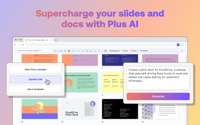 Plus AI được xem là một cái tên không thể bỏ qua trong danh sách các công cụ hỗ trợ tạo slide thuyết trình bằng trí tuệ nhân tạo. Điểm mạnh nổi bật của Plus AI nằm ở khả năng tự động đề xuất bố cục slide, lựa chọn màu sắc và hình ảnh, đảm bảo sự hài hòa và phù hợp với nội dung mà người dùng muốn truyền tải. Bên cạnh đó, Plus AI còn được yêu thích bởi khả năng tích hợp linh hoạt với đa dạng nền tảng khác nhau, giúp người dùng dễ dàng tận dụng tối đa sức mạnh của công cụ này trong công việc và học tập.