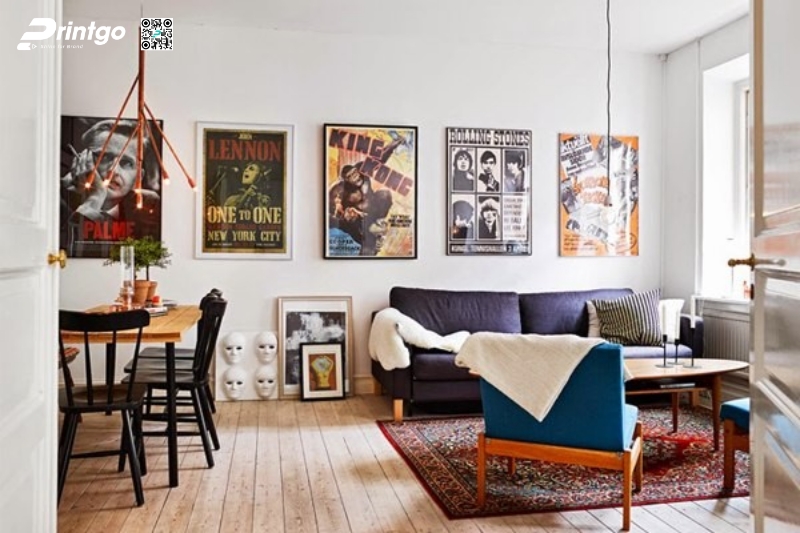 Làm mới không gian sống một cách đơn giản, sáng tạo: Đối với cá nhân, poster không chỉ là vật trang trí mà còn là phương tiện thể hiện phong cách và cảm hứng sống. Dán poster lên tường giúp biến những bức tường trống trở nên sinh động, tạo điểm nhấn thị giác và mang lại cảm giác mới mẻ cho căn phòng. Một vài mẫu poster được sắp xếp hợp lý có thể thay đổi hoàn toàn không khí của không gian sống hoặc làm việc.