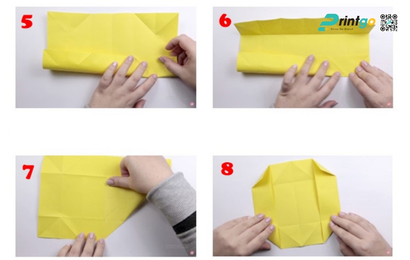 - Gập hai cạnh vào bên trong, mở ra tạo nếp gấp chuẩn bị cho việc tạo hộp nhỏ.
