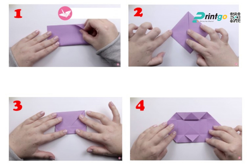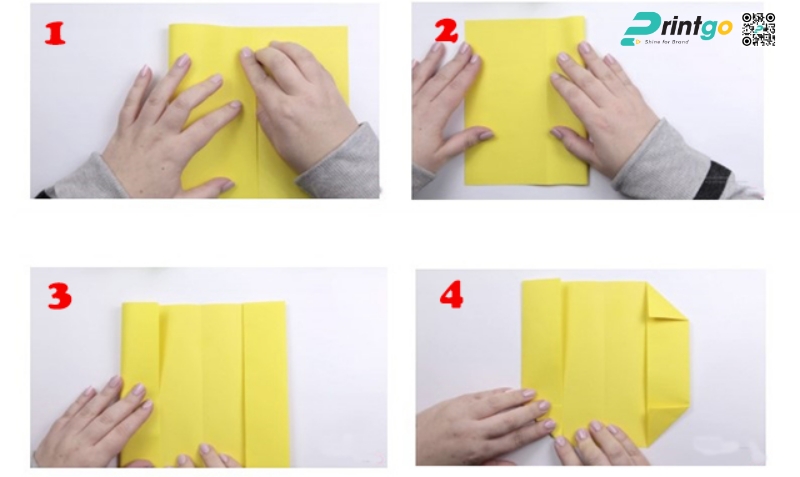 - Gấp tờ giấy thành 4 phần bằng cách gập và mở nhẹ, sau đó gấp 4 góc vào trong.