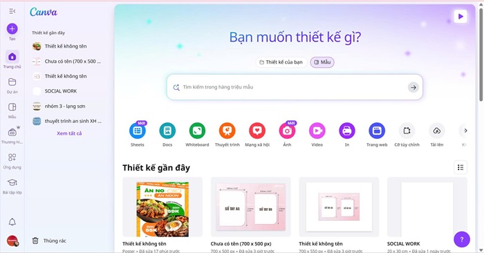 Truy cập vào trang chính thức của Canva tại https://www.canva.com, đăng nhập tài khoản bằng email hoặc Google Workspace.