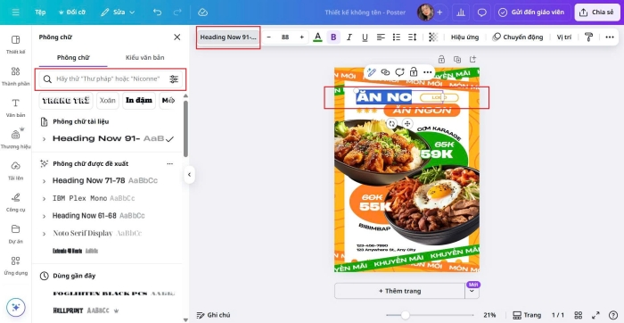 Kiểu chữ đóng vai trò quan trọng trong việc định hình phong cách poster. Để thay đổi font, hãy truy cập mục Văn bản (Text) ở thanh công cụ bên trái và chọn kiểu chữ phù hợp với thiết kế.