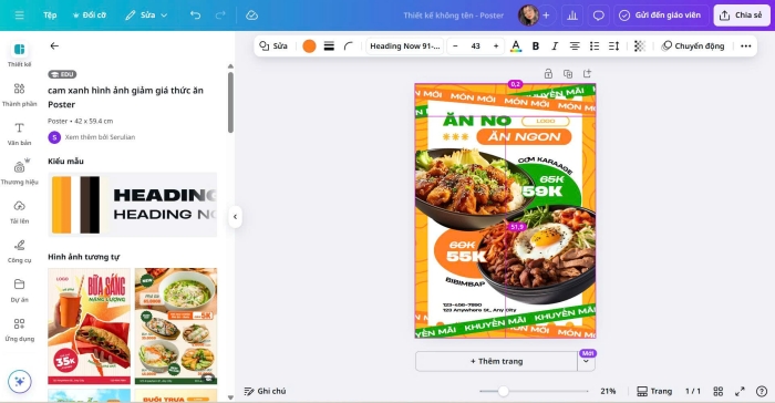 Đây là giai đoạn bạn sẽ thể hiện sự sáng tạo của mình. Canva hỗ trợ rất nhiều công cụ để bạn tự do tùy chỉnh bố cục, màu sắc, hình ảnh và văn bản, kể cả khi bạn không có nền tảng thiết kế.