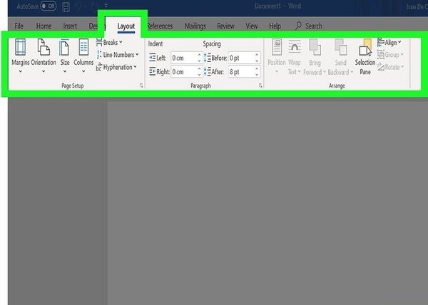 Bước 3: Tiếp đến, nhấp chuột vào thẻ Layout (Bố cục) hoặc Page Layout (Bố cục trang). Tuỳ vào từng phiên bản nhưng nhìn chung những tùy chọn này luôn nằm đầu trong ứng dụng.