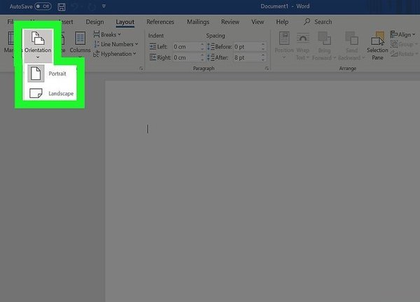Nếu muốn poster ở chế độ khổ ngang, bạn nhấp vào tùy chọn Orientation trong thẻ Page Layout và chọn Landscape. Nếu bạn muốn ở khổ dọc Portrait thì có thể bỏ qua bước này.