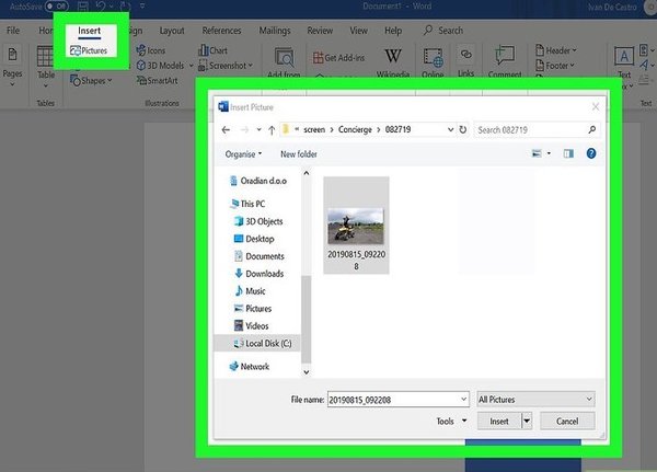Nếu bạn muốn chèn hình ảnh vào poster, nhấp vào thẻ Insert, chọn Pictures. Ngoài ra, bạn có thể chèn và tùy chỉnh hình dạng bằng cách nhấp vào Insert và chọn Shapes. Chọn hình dạng rồi dùng chuột để vẽ tại vị trí mà bạn muốn.