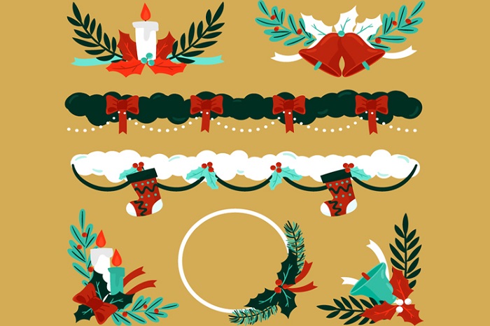 File vector tổng hợp các họa tiết trang trí Noel gồm nến, chuông, dây trang trí,...