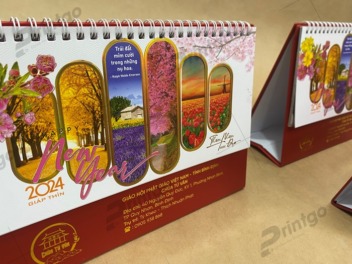 Để đảm bảo rằng món quà tết đáp ứng đầy đủ những yêu cầu tối giản, màu sắc và tinh tế, Chùa Từ Vân đã quyết định chọn Printgo làm đối tác để sản xuất bộ lịch tết 2024. Bộ lịch tết Chùa Từ Vân đơn giản với thiết kế không quá phô trương nhưng vẫn rực rỡ sắc màu của mùa xuân.