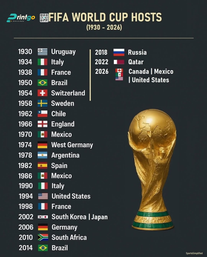 Bạn có biết danh sách các nước đăng cai World Cup 2026 gồm những quốc gia nào? Quá trình tuyển chọn và điều kiện của FIFA khắt khe ra sao? Lịch sử bóng đá thế giới đã gọi tên những đất nước nào? Bài viết chuyên sâu này của Printgo sẽ tổng hợp toàn bộ thông tin từ khái niệm, điều kiện cho đến danh sách chi tiết các quốc gia đã đăng cai World Cup từ kỳ đầu tiên năm 1930 cho đến nay.