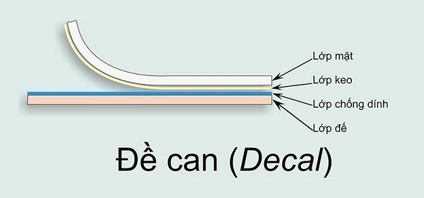 Decal là một loại chất liệu có hai mặt, một mặt được phủ keo, dễ dàng dính vào các bề mặt, chỉ cần tác động một lực rất nhỏ, hoặc có thể sử dụng nhiệt độ để độ bám tăng cao. So với cái loại nhãn dán khác, khi sử dụng decal người dùng không cần chất liệu dính bên cạnh vì decal đã có sẵn một mặt dính, rất tiện lợi cho người dùng. Chính từ đặc điểm ày mà decal rất được ưu chuộng hiện nay.