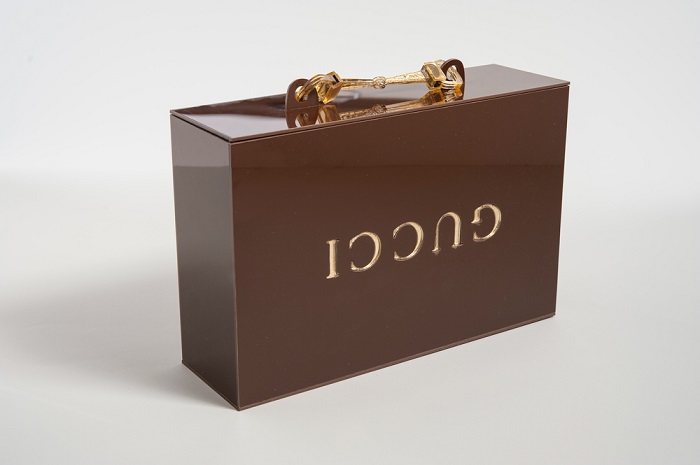 Hộp giấy Gucci với phần vỏ hộp phủ UV