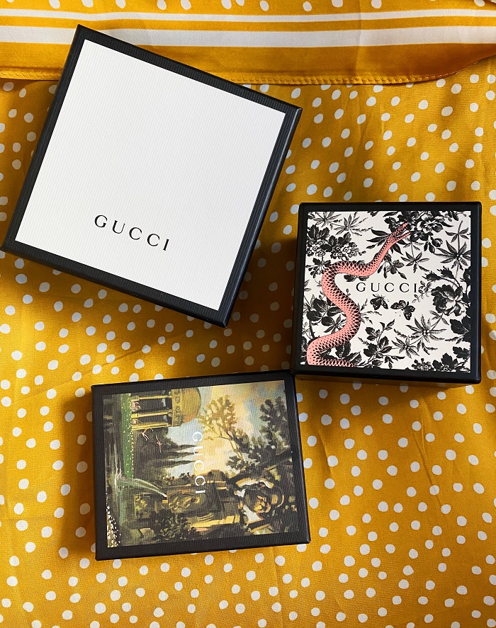 Hộp Gucci với đai cuốn biểu tượng quen thuộc