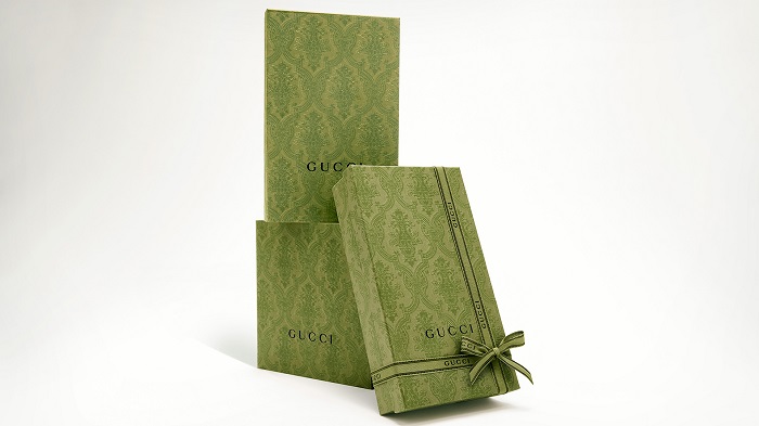 Hộp giấy Gucci bao gồm nhiều kiểu dáng khác nhau tùy theo món đồ được đựng bên trong. Thông thường, hộp gia công theo quy cách âm dương, bên trên có in họa tiết biểu trưng Gucci, hình dạng vuông hoặc chữ nhật phổ biến. Chất liệu làm hộp cũng rất phong phú, có thể là giấy mỹ thuật, hoặc carton lạnh bồi couches; ivory,...Không đơn giản là vật dụng thông thường mà chúng còn là phương thức marketing hiệu quả; ngoài ra còn loạt ưu điểm nổi bật khác như: