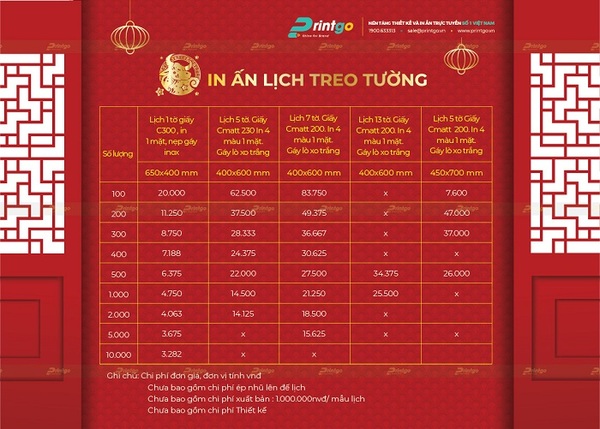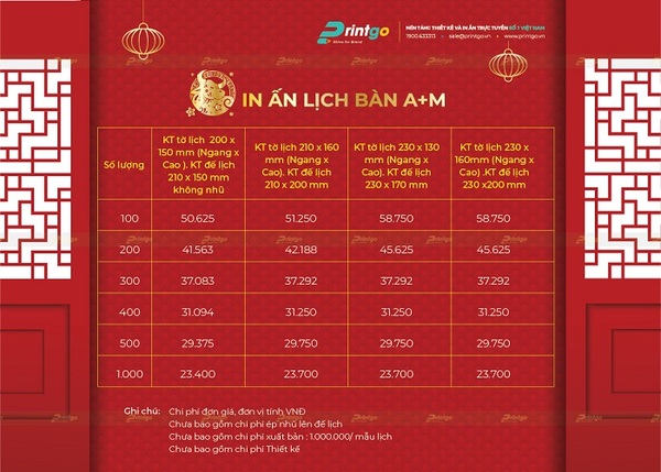 Bảng báo giá in lịch tết 2025 tại TPHCM tại Printgo