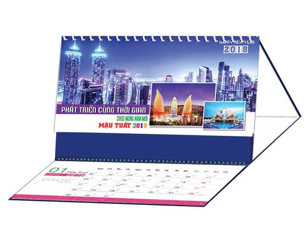 - Lịch: Cũng gồm 2 loại là 13 tờ và 52 tờ giống với lịch chữ A. Chất liệu giấy tùy chỉnh theo mục đích sử dụng của khách hàng.