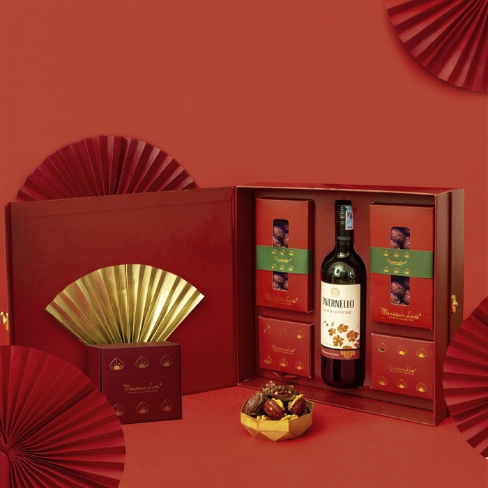Hộp cứng nắp lật đựng rượu và hoa quả khô