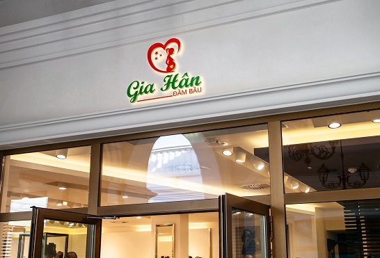 Mẫu thiết kế logo shop thời trang đầm bầu Gia Hân do Printgo thực hiện. Sử dụng hình ảnh đặc trưng về người phụ nữ mang bầu được bao bọc bởi trái tim thể hiện tình yêu thương và tên thương hiệu.