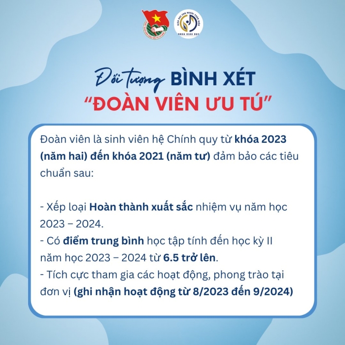 Lưu ý: Đối với trường đại học, cao đẳng, việc bình chọn do Ban Thường vụ Đoàn trường thực hiện, dựa trên đề xuất từ chi đoàn, liên chi đoàn, đoàn khoa.